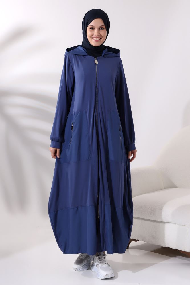 Two-piece gamis set terdiri dari inner dress + outer, sehingga memberikan fleksibilitas styling selama perjalanan.